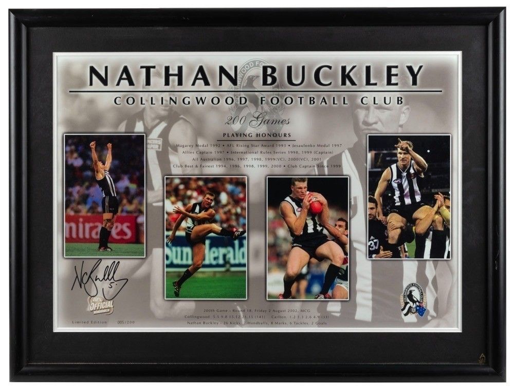 Source: rvbadgekwg.pages.dev 'Nathan Buckley 200 Games'. A framed & glazed limited edition… Sporting AFL/VFL Memorabilia , Nathan Buckley has been forced to sell important memorabilia from his football career — including multiple match-worn grand final guernseys — three years on from his divorce Footy legend Nathan Buckley forced to buy back his own AFL medals and jumpers after divorce sees his footy memorabilia go to auction
